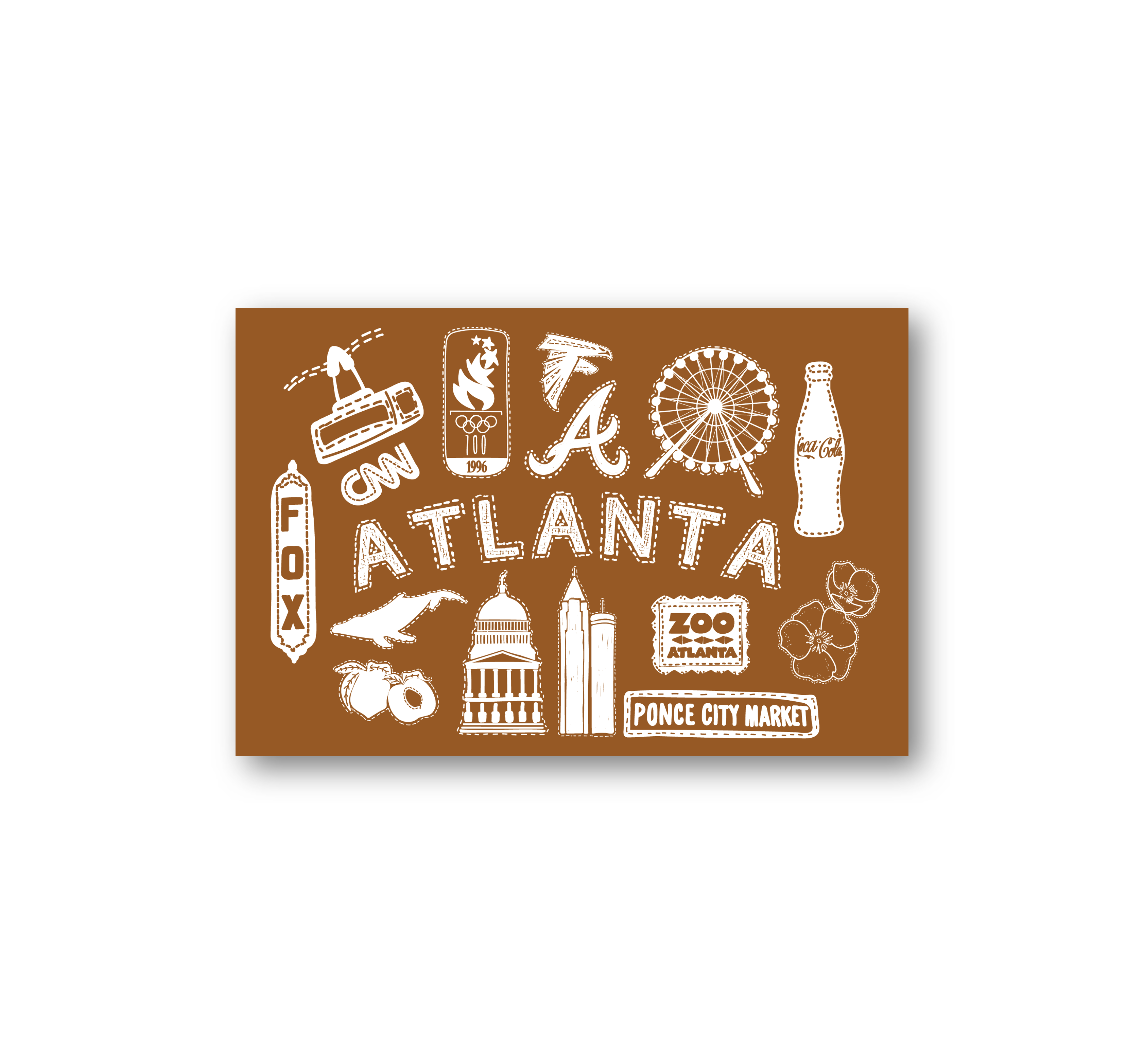 Details: This postcard features a beautiful illustration of well known Atlanta icons. The back of the postcard reads "hello" at the top and includes a place to write addresses and a personal note. Printed on high quality paper in the USA. Size: 4 x 6 inches. RETAIL PRICE: $3.00