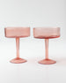 Handblown with a stunning hammered finish, these coupe glasses take your cocktails and mocktails to the next level. Crafted with care at a woman-owned business, each is ethically made from 100% recycled glass. This collection is made from colored glass (not sprayed) to ensure the color will last a lifetime. Please note that these items are 100% handmade and slight size variations and imperfections may occur. - Dishwasher safe - Sold as a set of 2 glasses - 4 x 4 x 5.5 inches - 8oz / 210ml - Ethically crafted in India handblown barware, recycled glassware