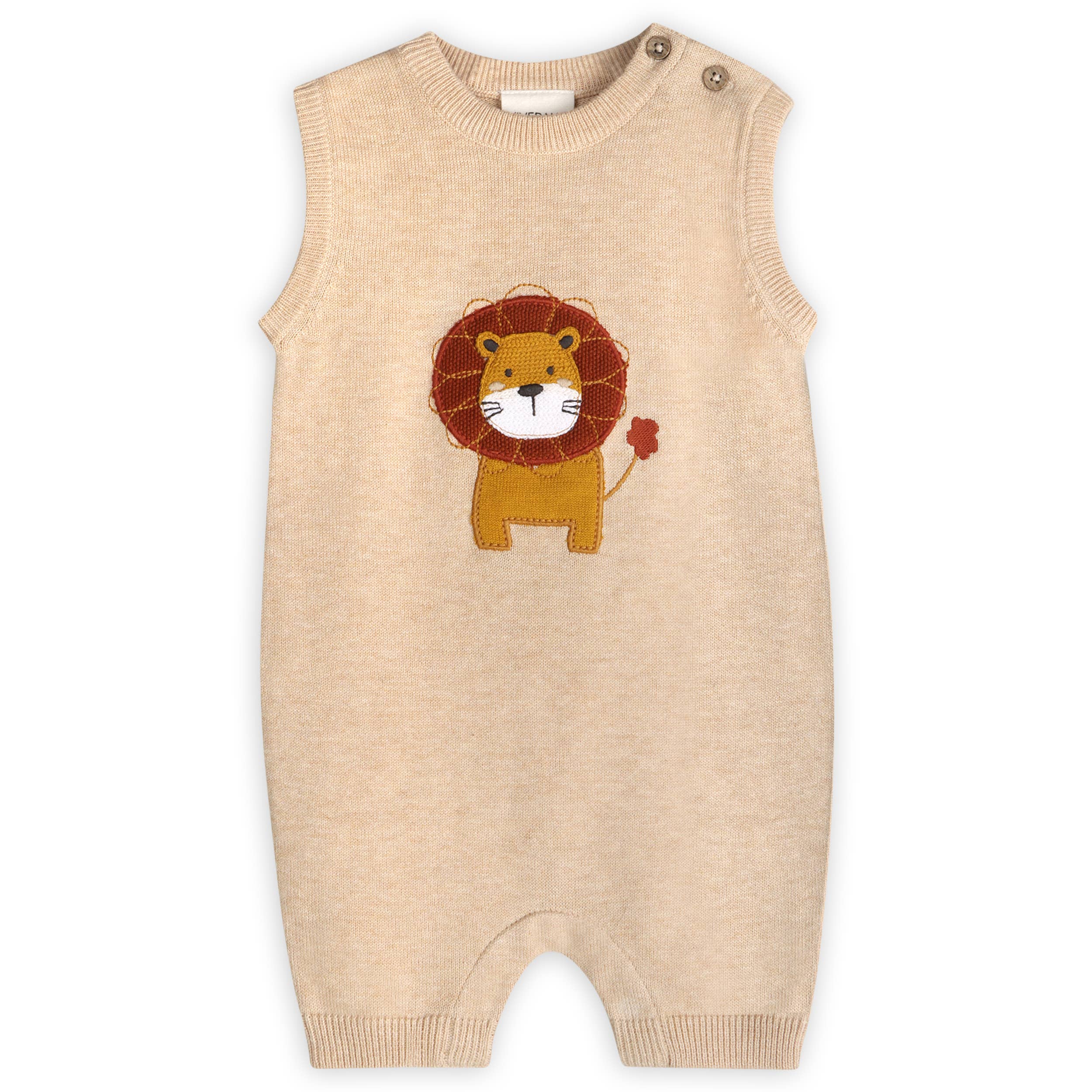 Lion Appliqué Knit Sleeveless Baby Romper – Soft, Playful, and Roaring with Personality